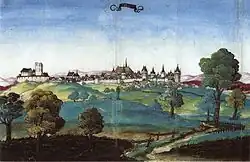 In the early 13th century, Duke Casimir I of Opole decided to move the settlement from the Pasieka Island to the right shore of the Oder river (since the 17th century, the old stream bed of the Oder, known as the Młynówka). All of the inhabitants had to be moved in order to accommodate the castle that was built in place of the old city.[13] Former inhabitants of Ostrówek, together with German merchants that immigrated from the West, received the first town rights probably as early as around 1217, although this date is disputed.[14] Opole received German town law in 1254, which was expanded with Neumarkt law in 1327. Opole developed during the rule of duke Bolko I of Opole. The castle was finally completed around this time and new buildings, including the city walls and the Holy Cross Church, were constructed.