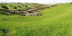 The Geology of the Raglan-Kawhia Area[5] says, "The N-striking faults are evidenced by trends of the Tasman Sea coastline and probably by stream drainages such as that of the Opotoru River c 6 km E of Karioi summit." and "The base, consisting of interbedded conglomerate, sandstone, and locally siltstone, is strongly unconformable on Te Kuiti Group rocks south of Raglan at the Opotoru River estuary (R 14/751741)".