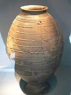Excavations inside the first wall found little beyond hearths and a few sparse items. Some of these were linked to bronze handicrafts: molds for bracelets and lapilli. Also, a lovely pottery vase decorated with cordons was discovered, of a type known in Armorica, and whose clay came from present-day Lamballe. Apart from the furniture, dated to the end of the Gaulish era, wattle and daub elements have been found.[4]