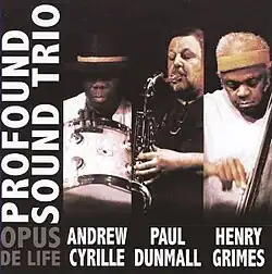 Opus de Life is a live album by the Profound Sound Trio: drummer Andrew Cyrille, saxophonist Paul Dunmall, and bassist/violinist Henry Grimes. It was recorded in June 2008 at the Vision Festival held at the Clemente Soto Velez Cultural and Educational Center in New York City, and was released by Porter Records in 2009.[1]