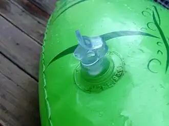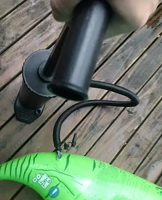 The inflation valves have caps, which require to be open in order to fill the object with air by placing the lips and blow air inside it manually or use air pump's and closed after finish. To deflate an object and make transport or storage easier, the cap can be opened for the air to be drained, and the object can be squeezed so the deflation process is quicker. Some valves contain safety structures that require additional actions to let air through when the cap is removed.[2]
