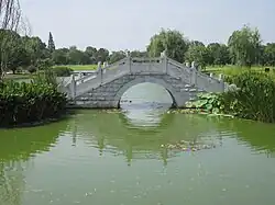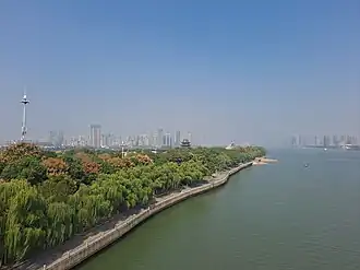 Orange Isle (Chinese: 橘子洲; pinyin: Júzi Zhōu) is an isle in Xiang River, Changsha, Hunan, China.[1][2] It also known by other names, such as Ju Isle (橘洲; Jú Zhōu) and Shuilu Isle (水陆洲; 水陸洲; Shuǐlù Zhōu; 'Water-and-land Isle'). It has a length of 5 kilometres (3.1 mi), a width of 40 to 140 metres (130 to 460 ft) and a total area of 370,900 square metres (91.64 acres).[3][4] It was also a national AAAAA (5A) level tourist attraction and a national key scenic spot.[5]