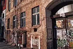 Oranienburger Straße is home to one of Berlin's few ghost legends: The ghost wall ('Gespenstermauer').[10] According to the legend, one can sometimes see the spirits of two children dash into the street and disappear near Oranienburger Straße 41 (just west of the bar 'X-terrain, and slightly East and across the street from Tacheles). The identity of the children is unknown, as is the time period in which they supposedly originate (the visions are small and vague and shadowy, apparently usually seen only quickly out of the corner of one's eye), but legend has it that the child spirits will do small favors in exchange for pennies. The procedure is to stick a penny in the crumbling mortar of the old wall near Oranienburger Straße 41 and make a wish. If the wish is modest (e.g. one that two ghost children could do), and unselfish, then it will supposedly be granted. It is unclear when the legend started, but it was known at least prior to the 1990s, among former residents of East Berlin. An inspection of the wall shows that indeed there are many pennies (and other small denomination coins) pushed into the crumbling mortar. In some versions of the story popular in GDR times, the ghost children grant wishes in return for candy.