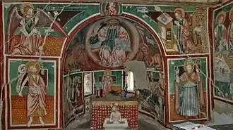 Oratory of Saint Lawrence all'alpe Seccio (Italian: Oratorio di San Lorenzo all'alpe Seccio is a Roman Catholic church in the village of Boccioleto, in the Province of Vercelli and the region of Piedmont, Italy.