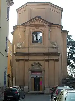 The Oratorio di San Quirino is a Baroque style, former-Roman Catholic oratory, that is a small church or chapel, located at Strada agli Ospizi Civili, alongside the east bank of the Parma river, in central Parma, Italy. The oratory has been deconsecrated and is now used for cultural events and concerts.
