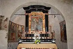 Today, the building consists of a single nave, a semicircular apse, and a gabled wooden roof.[1]
