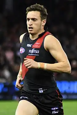 He made his debut against Richmond in round 20, 2014[7] and was dropped for the following round but regained his spot in round 22 against the Gold Coast, replacing Dyson Heppell who missed the game due to a broken hand. In the final round of the 2015 season, he was rewarded with a nomination for the AFL Rising Star where he recorded 27 disposals and five marks in the Bombers' three-point victory over Collingwood.[8]