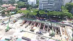 The station was first announced on 29 August 2012 as part of the Thomson Line (TSL).[5][6] Contract T218 for the design and construction of Orchard Boulevard Station was awarded to KTC Civil Engineering & Construction Pte Ltd at S$143 million (US$114.3 million) in May 2014. Construction started in 2014, with an initial expected completion date of 2021.[7]