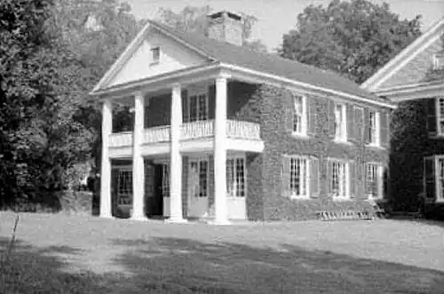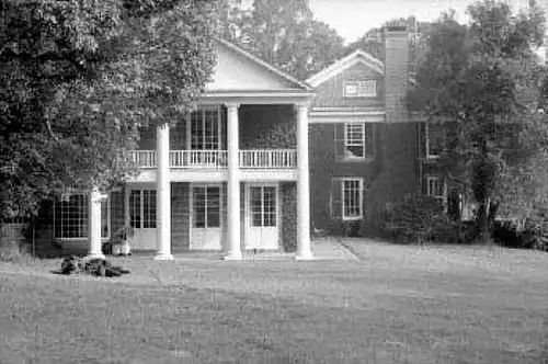 Various views of Orchard Pond's plantation house, a 2-story brick home with 8 support columns, 4 for each floor.