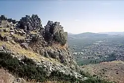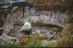 Opposite the ancient theatre is the 9th-century Byzantine church of the Dormition of the Virgin Mary (Panagia) of Skripou.[30] Well-preserved inscriptions date the church securely to 873/4, naming its sponsor as the Protospatharios Leon, who served as a senior official of the emperor Basil I during the period of his joint reign with his sons Constantine and Leo.[31]