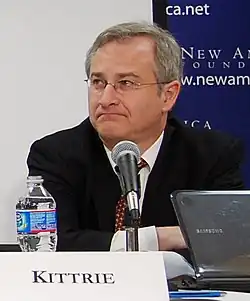 Kittrie has published articles in media outlets, including The Wall Street Journal,[10] Foreign Affairs,[11] The National Interest,[12] Arms Control Today,[13] and The Arizona Republic. He has also been a speaker at numerous universities including Harvard, Yale, Columbia, Johns Hopkins, King’s College London, Georgetown, the University of Michigan, and the University of Pennsylvania. In addition, he has done on-air commentary for television and radio networks and stations including Al Jazeera, Fox, Christian Broadcasting Network, Univision, NBC, and ABC.