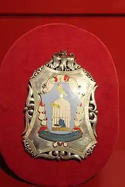 The Orden wider den tierischen Ernst (German for 'Order for Combating Deadly Seriousness') is a carnival order that is awarded once a year by the Aachen Carnival Association to public figures.[1][2] The order of knights[2] honors people who combine "humor and humanity in office".[1] The popular order has been awarded since 1950.[3] The award ceremony traditionally takes place during a foolish ceremony (närrische Festsitzung).[3] The WDR has been recording the ceremony for the first and third programs since 1995.[4] In 2020 around 2.8 million people across Germany watched.[4]