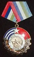 The orders, decorations, and medals of Cuba are orders and medals awarded for exemplary service to the nation of Cuba. The current decoration system has 2 honorary titles, 22 orders, 49 medals, and 35 distinctions.[1]