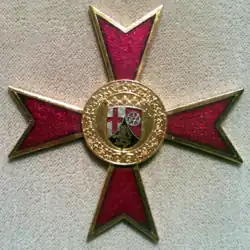 The Order of Merit of Rhineland-Palatinate (German: Verdienstorden des Landes Rheinland-Pfalz) is a civil order of merit, of the German State of Rhineland-Palatinate. The order is presented for outstanding service to the state and people of Rhineland-Palatinate. It was founded on 2 October 1981, and first awarded in 1982. The order is limited to 800 living recipients.[1] Through 2012, the order had been awarded 1035 times.[2]