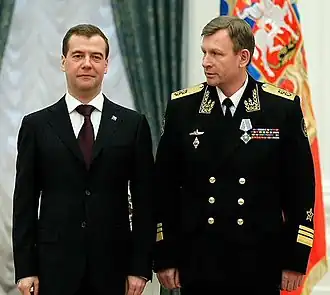{{cite web}}: Missing or empty|url=(help) - ^ "Recipients of the Order "For Naval Merit" from the site of the President of the Russian Federation" (in Russian). Presidential Press and Information Office of the Russian Federation. Retrieved 2012-05-19.