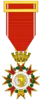 The order had the usual five degrees. There was a special collar for heads of state and two medals were attached to this order of merit. The ribbon was red with a white border.