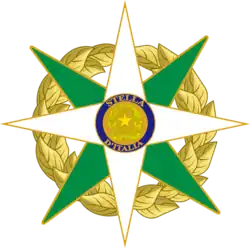 The Order of the Star of Italy (Italian: Ordine della Stella d'Italia [ˈordine della ˈѕtɛlla diˈtaːlja]) is an Italian order of chivalry that was founded in 2011. The order was reformed from the 1947 Order of the Star of Italian Solidarity by the 11th President of Italy, Giorgio Napolitano.[1] The emphasis of the reformed award was shifted from post-war reconstruction to the preservation and promotion of national prestige abroad, promoting friendly relations and co-operation with other countries and ties with Italy.