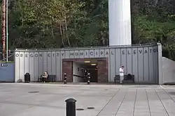 The Oregon City Municipal Elevator is a 130-foot (40 m)[2] elevator which connects two neighborhoods in Oregon City in the U.S. state of Oregon. It is one of at least 8 outdoor municipal elevators in the world.[2] The upper portion contains an observation deck which accounts for its flying saucer appearance.