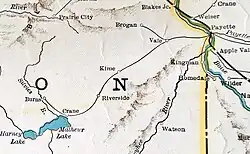 Malheur Valley Railway built a 23.74-mile (38.21 km) branch line of the Oregon Short Line Railroad (OSL), beginning at that company's main line south of Ontario, Oregon, U.S., and extending west through the valley of the Malheur River to Vale, then northwest to Brogan. The company was incorporated on January 26, 1906, and opened its first section of road on January 15, 1907, under lease to the OSL, then an operating subsidiary of the Union Pacific Railroad. Construction between Vale and Brogan was aided by the Willow River Land and Irrigation Company. On December 23, 1910, new UP subsidiary Oregon–Washington Railroad and Navigation Company (OWR&N) acquired the property of the Malheur Valley Railway, but the line continued to be operated under lease by the OSL. The OWR&N subsequently built a line west from Vale, eventually reaching Burns, and also leased this Ontario–Burns Branch to the OSL.[4] (This became moot in 1936, when the UP leased the OSL and OWR&N.[5])