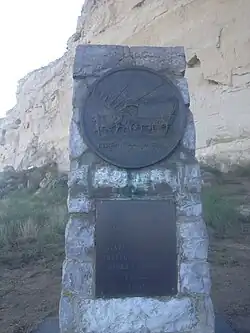An Oregon Trail memorial at Register Cliff, Wyoming, reproducing the coin's design