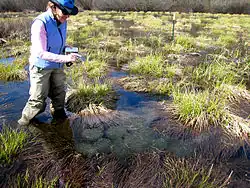 The Oregon spotted frog is listed internationally on the IUCN Red List as vulnerable.[1] The Oregon spotted frog was listed as threatened under the Endangered Species Act (ESA) on 29 August 2014.[12] It is listed as endangered in Canada[13] under the Species at Risk Act. Its decline has also been linked to areas inhabited by the introduced bullfrog and related to loss and degradation of breeding habitat such as may result from dam construction, alteration of drainage patterns, dewatering due to urban and agricultural use of water, excessive livestock grazing, and other human activities that reduce or eliminate lentic shallow water.[1]