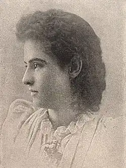 Orelia Key Bell was born in Atlanta, Georgia, on April 8, 1864, to Colonel Marcus Aurelius Bell (1828–1885) and Mary Jane Hulsey (1837–1901),[1] in the Bell mansion, a stately Southern home in the heart of the city built in 1860. The house became historic soon after Bell's birth, as the headquarters of General William Sherman's engineering corps led by Captain Orlando M. Poe, and the room in which she was born and spent the first three months of her life was that used by General Sherman as a stable for his favorite colt.[2] The house was made of "plaster-covered stone marbleized in shades of blue, yellow, and red" and thus nicknamed the "Calico House".[3] The house was demolished in 1925.[4]