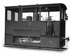 O&K built tramway locomotives, which were used for operation on tramways serving public traffic, either with a driver's cab at the front and rear or with only one driver's cab in the middle of the locomotive; furthermore with a power unit cover in two different designs. Whereas one version only served to conceal the engine from road traffic, the other version served to protect the engine parts against dust. The desired type of covering is to be specified. The weight of this locomotive was relatively high and therefore it could develop a great performance immediately when starting up, even on short gradients. This was effectively supported by a high steam overpressure, which O&K usually provided for these locomotives with 14 bars (200 psi).[15]