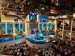 The organ is played 363 days a year, with private groups before opening hours, making it the most played organ in the world.[1][2] The organ is powered by three Spencer turbine blowers (with a fourth as a standby), spinning at 1800 RPM with a combined 60HP, moving 10,000 cubic feet of air. The Wurlitzer has more than 6,000 pipes. The largest pipes are 32 feet long and could fit four people inside.