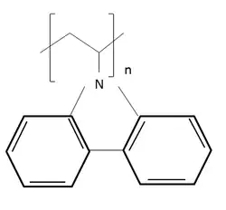 The vast majority of the polymers are based on carbazole containing polymers like poly-(N-vinyl carbazole) (PVK) and polysiloxanes (PSX). PVK is the well studied system for huge varieties of applications.[14] In polymers, charge is transported through the HOMO and the mobility is influenced by the nature of the dopant mixed into the polymer, also it depends on the amount of dopant which may exceed 50 weight percent of the composite for guest-host materials.[15] The mobility decreases as the concentration of charge-transport moieties decreases, and the dopant's polarity and concentration increases.[16]