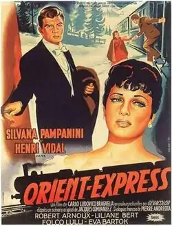 Orient Express is a 1954 drama film directed by Carlo Ludovico Bragaglia and starring Silvana Pampanini, Henri Vidal, Folco Lulli, Eva Bartok, and Curd Jürgens.[1] It was made as a co-production between Italy, France and West Germany.