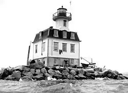 Orient Long Beach Bar Light is a lighthouse off Orient, New York. It was originally a screwpile lighthouse that was later converted to concrete caisson foundation.[1] Its early appearance as a screwpile lighthouse gave it the nickname "Bug Light" as there were no other such lighthouses in the vicinity.