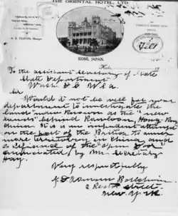 Eventually, the Oriental Hotel was acquired by two British settlers, Arthur Hasketh Groom and Edward Hazlett Hunter, and other foreign settlers in 1897. The hotel was made into a limited company: the Oriental・Hotel, Ltd. C. N. Cross served the first president of the company, and Groom served the president sometime until 1916.