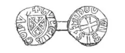 In the Holy Roman Empire, Saxony, Thuringia and Brandenburg, special coins called bracteates bear the effigy of the issuing prince, with shield and gonfanon. The decoration of the shield does not appear to be fixed until 1160–1170, while the gonfanon appears to be stable earlier.[1][Pa 4]