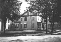 By at least 1860 Clemens had come to the conclusion that slavery was morally wrong, and had worked for the election of Republican Abraham Lincoln.[4] Following Lincoln's election as president that year, Clemens was appointed Secretary to the new government of the Territory of Nevada at a salary of $1,800 a year. His younger brother Sam accompanied him to Nevada Territory in the summer of 1861. Sam would later write about this journey in his semi-autobiographical book, Roughing It.[5] Sam drifted into mining and newspaper work, while his brother served as Territorial Secretary and often as acting governor when James W. Nye was outside the territory. It was while acting as temporary governor that Orion gained political popularity by avoiding a "Sagebrush War" with California over disputed state boundary lines.[6] He built a home in Carson City and brought his wife, Mollie, and young daughter, Jennie, to Nevada a year after his arrival. Jennie died there in February 1864. Clemens offered strong support of the newly formed government in Carson City, paying out of his own pocket for the printing of the House and Senate Journals and to furnish the two territorial legislative chambers.[7]