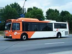 The Orion VII is a line of low-floor transit buses available in 30' rigid, 35' rigid, and 40' rigid lengths manufactured by Daimler Buses North America's subsidiary Orion Bus Industries between 2001 and 2013 in three generations. The conventional powered buses, either with longitudinally-mounted diesel or natural gas engines, used a T-drive transmission coupling. A series hybrid variant powered by a diesel-driven generator was also available. The Orion VII replaced the fully low-floor Orion VI and high-floor Orion V buses, and was manufactured until its parent company DaimlerChrysler withdrew from the transit bus market in 2013.