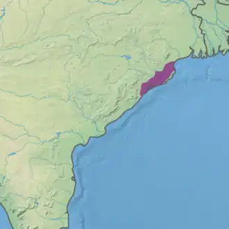 The Odisha semi-evergreen forests (also Orissa semi-evergreen forests) are a tropical moist broadleaf forest ecoregion of eastern India. The ecoregion covers an area of 8,600 square kilometers (3,300 sq mi) on the coastal plain of Odisha state, bounded by the Eastern Highlands moist deciduous forests west and north-west, transitioning from the huge ecoregion Lower Gangetic Plains moist deciduous forests along the north coastland, and surrounding the smaller ecoregion Godavari-Krishna mangroves along a stretch of the south-east coast by the Bay of Bengal.