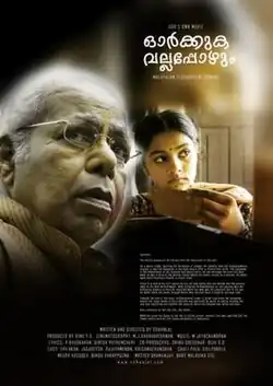Orkkuka Vallappozhum (Remember Once A while) is a Malayalam movie released in 2009. This 120-minute feature film has Thilakan as Sethumadhavan - a seventy-year-old enjoying his retired life and trying to rediscover the innocence of his past. It marks the return of actor Krishnachandran after an absence of 23 years.