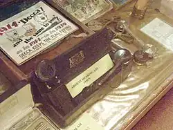 a working crystal set (made about 1912) with the crystal/cat's whisker detector clearly visible. Visitors may put the headphones on and listen to BBC Radio Scotland.