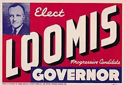 In 1940, he ran for Governor of Wisconsin, challenging the Republican incumbent Julius Heil. He fell 12,000 votes short in the general election. He ran again in 1942, and this time defeated Heil by over 100,000 votes. He died suddenly of a heart attack a month before he was to take office, and the Republican Lieutenant Governor Walter Samuel Goodland served all of Loomis's term as acting governor.[6]