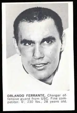 Charles Orlando Ferrante (born September 24, 1932) is an American former professional football player and Disney Imagineer. He played college football for the USC Trojans and served two years in the U.S. Navy before playing two seasons with the Los Angeles Chargers.[1]