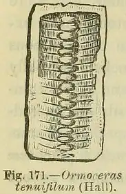 Ormoceras is an actinocerid nautiloid genus and type for the family Ormoceratidae, found in North America from the late Chazyan through the early Cincinnatian of the Middle and Upper Ordovician, but which continued through the Devonian worldwide.