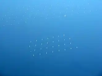 Construction started in 2010 and was completed in August 2011.[3][4] Prysmian provided submarine power cable connections including 27 km of 33 kV inter-array cables to connect the wind turbines and a 42 km of 132 kV export cable to connect the wind farm to the substation.[5][6] 30 turbines each with 5 MW nameplate capacity are provided by REpower and electrical works were to be carried out by Areva.[7] Steel foundations for generators were developed and designed by OWEC Tower and produced by Burntisland Fabrications.[8] Logistics and assembly services are provided by Harland and Wolff. Generators were installed by A2SEA.[9] The first four steel foundations were delivered in July 2010,[1] and were installed by a joint venture of Scaldis and Geosea BV.