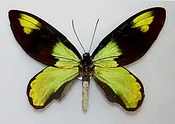 Ornithoptera victoriae regis, female dorsal view -