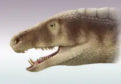 Ornithosuchidae is an extinct family of pseudosuchian archosaurs (distant relatives of modern crocodilians) from the Triassic period. Ornithosuchids were quadrupedal and facultatively bipedal (e.g. like chimpanzees), meaning that they had the ability to walk on two legs for short periods of time. They had distinctive, downturned snouts, unique, "crocodile-reversed" ankle bones, and several other features that distinguish them from other archosaurs. Ornithosuchids were geographically widespread during the Carnian and Norian stages of the Late Triassic with members known from Argentina, Brazil, and the United Kingdom. Four genera, comprising Ornithosuchus, Venaticosuchus, Dynamosuchus,[1] and Riojasuchus are presently known.[2] The family was first erected by German paleontologist Friedrich von Huene in 1908.[3]