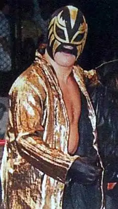![]() Hernández wearing his trademark wrestling mask | |