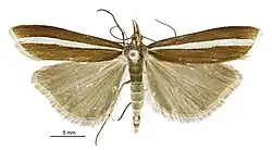 - ^ a b Patrick, B. H. (1991). "Description of a new species of Crambidae: Crambinae (Lepidoptera) from New Zealand". New Zealand Journal of Zoology. 18 (3): 357–362. doi:10.1080/03014223.1991.10418050.