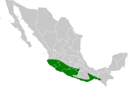 The West Mexican chachalaca is found in a swath of southwestern Mexico between northern Jalisco and southwestern Chiapas and inland as far as southwestern Puebla. It primarily inhabits mature deciduous forest, thorn scrub, and secondary forest. Locally it inhabits pine-oak forest and sometimes is found in mangroves and palm plantations. In elevation it ranges from sea level to 2,400 m (7,900 ft).[3]