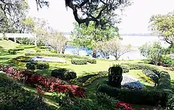 In the 1930s, James Laurence Sprunt and his second wife Annie enlarged the garden to its current size of 20 acres (8.1 ha), with some of the landscape design done by Robert Sturtevant.[10] After a relative was involved in an automobile accident, the Sprunts opened their garden to the public in hopes of raising money for medical expenses. Charging 25 cents for an entrance fee, the family raised $1,000 in a week. From that point on, the Sprunts decided to keep the garden open to the public. In 1954, the Sprunt family donated 114.5 acres (46.3 ha) of the Orton Plantation to establish the Brunswick Town State Historic Site. Four years later, James Laurence Sprunt wrote a book about the history of Orton Plantation entitled The Story of Orton Plantation. After the death of Laurence Sprunt in 1973 and Annie Gray Sprunt in 1978, the ownership was shared by their four sons: James Laurence Sprunt Jr., Kenneth Murchison, Samuel Nash, and Laurence Gray Sprunt. Kenneth succeeded Bragaw as manager of the gardens after World War II until 2006 when Laurence bought the gardens from his brothers and continued the management. Ownership of the Orton Plantation was passed down to each generation of the Sprunt family for 126 years.