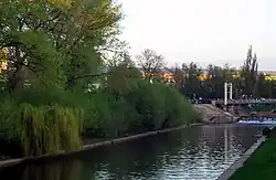 In central Oryol, streets fan out from the fortress; two main axes are the Upper and Lower Korchak Roads. Opposite the fortress was probably a second marketplace in the Zaotsk section, where the dragoon settlements had a relatively-regular layout along the river. Away from the river, the grid becomes a fan. The city – its fortress, three marketplaces, two monasteries and a number of parish churches – was developed from the river. Its structure was visible from the Oka: the central fortress, the fan-shaped center and the grid of the Zaotsk settlements. The city was connected by bridges, making Oryol a military fortress and a trade center.[13]