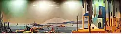 Some of the Renovators were influenced by surrealism, like vivarian painter Maruxa Mallo, who had strong ties with surrealists such as Bretón, Lorca and Buñuel. She was far from his homeland, but the Galician sea was included as a theme in her work. During the fascist uprising, Mallo was in Vigo and managed to escape to Portugal. With the help of Gabriela Mistral, Chilean ambassador in Lisbon, could travel to Americas, where she was in touch with Seoane.[36] Other artists marked by the war were Francisco Miguel, killed in 1936; he worked with Siqueiros and illustrated works by Borges and Mistral. The painter Urbano Lugrís, son of Lugrís Freire, an intellectual contrary to Franco, was forced to take the side of fascism, like other artists.[37] He also worked on set designs and architecture, such as the Surrealist chapel of Magi, in Bueu.[38]